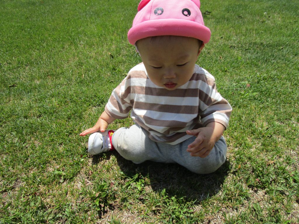今日は、心地よい気温で0、1歳児はあいあい公園の築山登りに挑戦に行きました!!