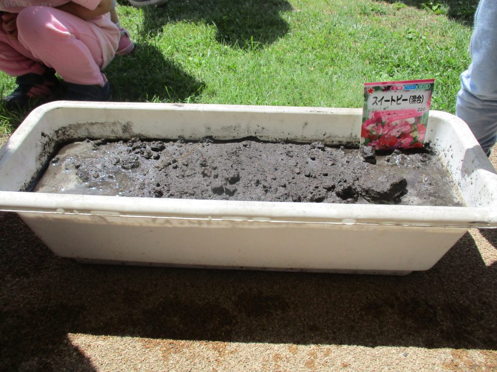 子ども達が選んだお花の種をまきました。コスモス・スイートピー・ひまわりの3種類です。