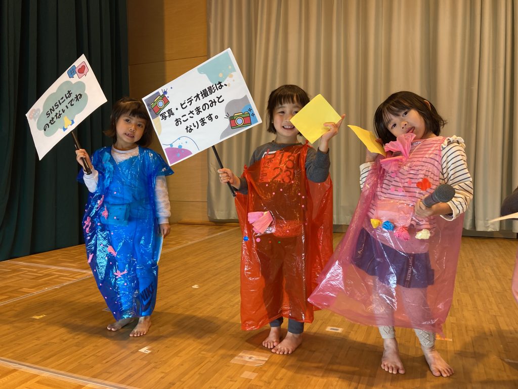 ねんちゅう組からの出し物は【👗ファッションショー👗】・・子ども達が装飾した衣装を着て、ポーズを決めてくれましたよ!