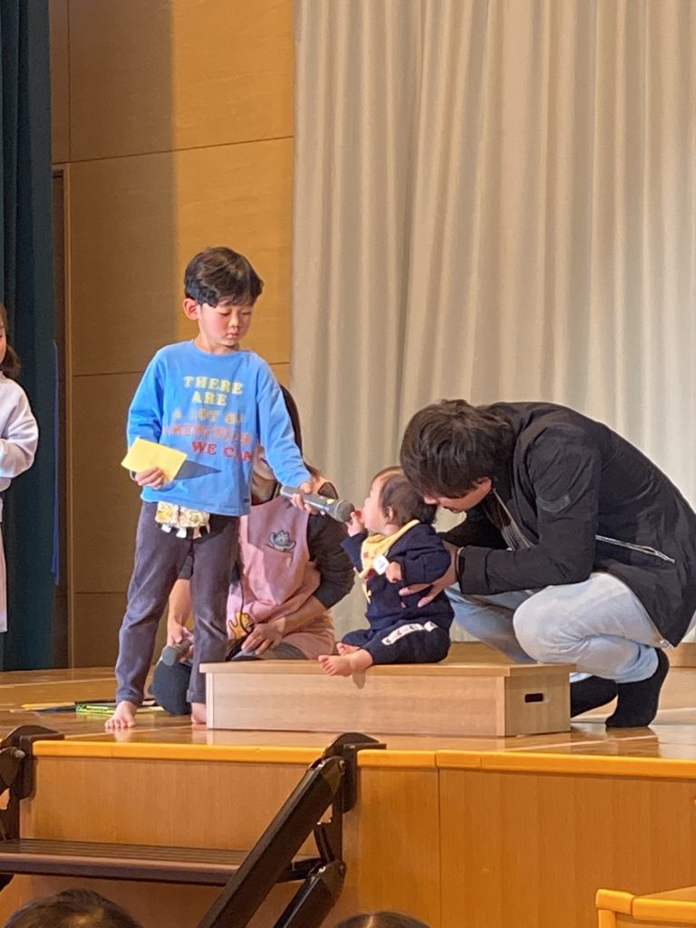 今日はステージの上でねんちゅう組の子ども達が一生懸命インタビューしてくれました。