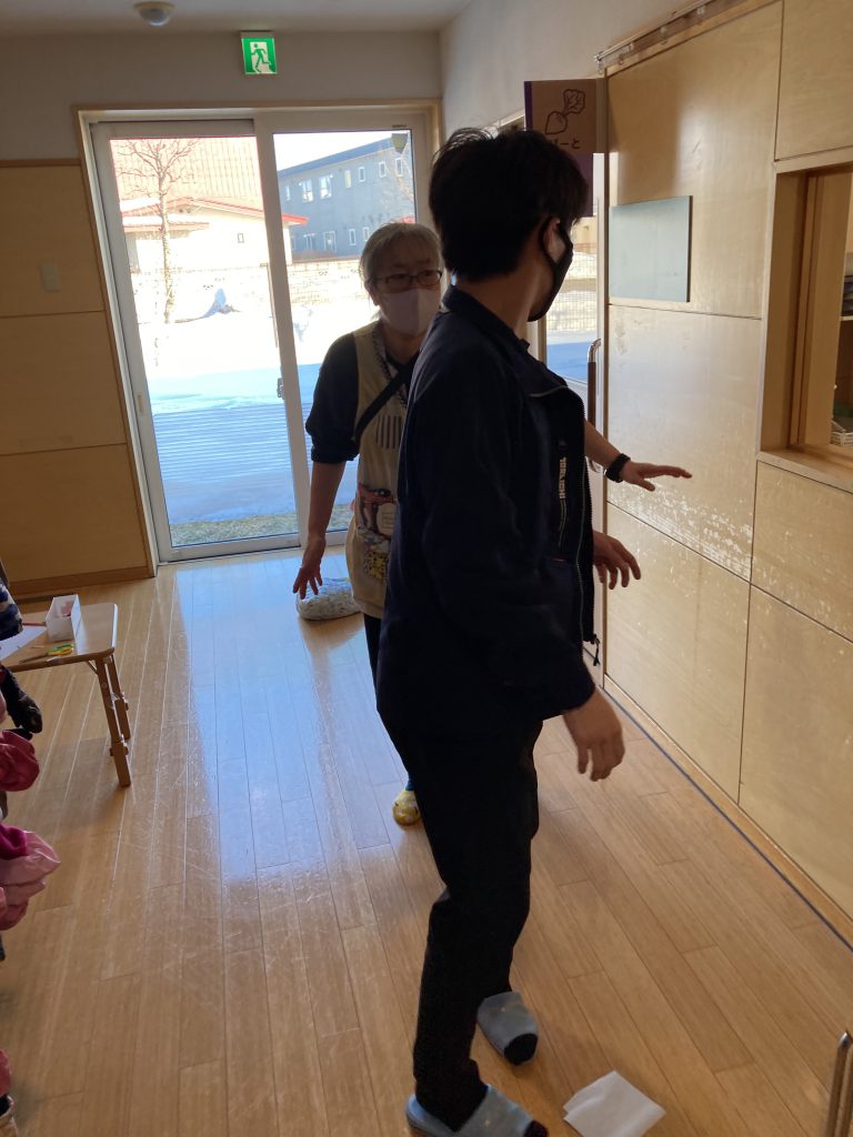 午後からは、帯広警察署の方に来て頂き、お迎えを装って保育園内に入ってきたという想定の元、訓練を行いました🚔