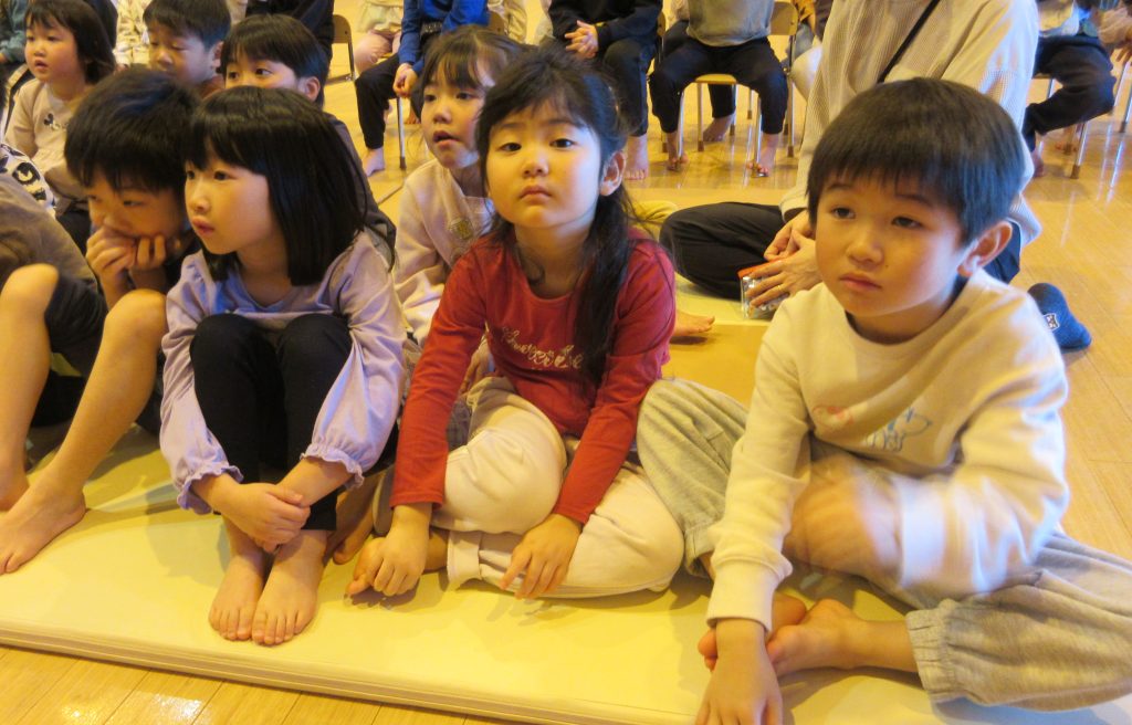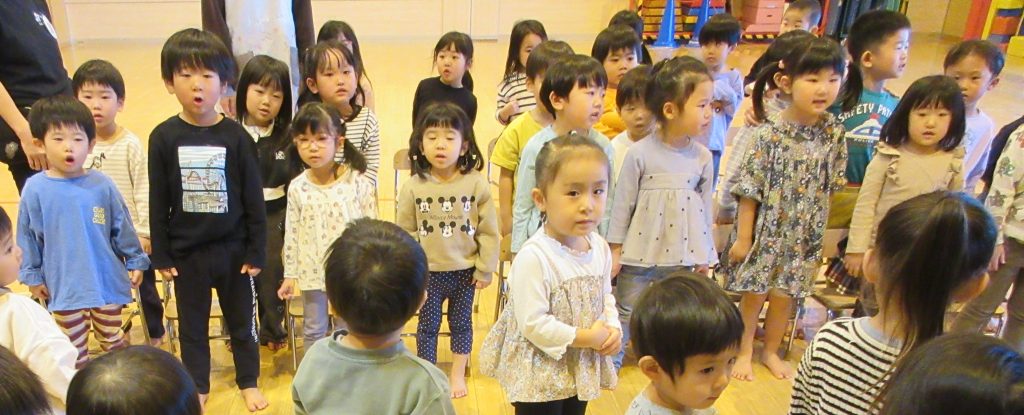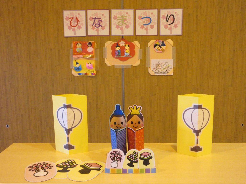 みんなで出し物を楽しんだ後は、0~5歳児の制作の紹介、『うれしい ひなまつり♬』を歌いました。