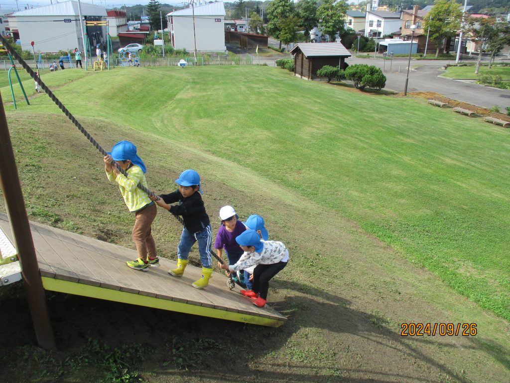 天気が良くなり、ピウカ公園まで行くことが出来ました。子ども達の体力、パワーもあり沢山遊ぶ事が出来、よい一日となりました。お弁当やその他の準備ありがとうございました。