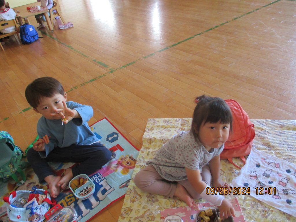 お弁当は、保育所に戻ってから遊戯室で食べました!おいしいね~!