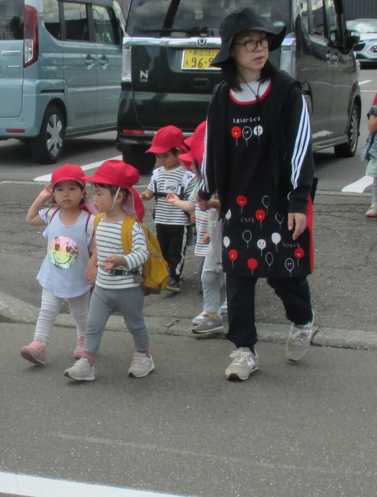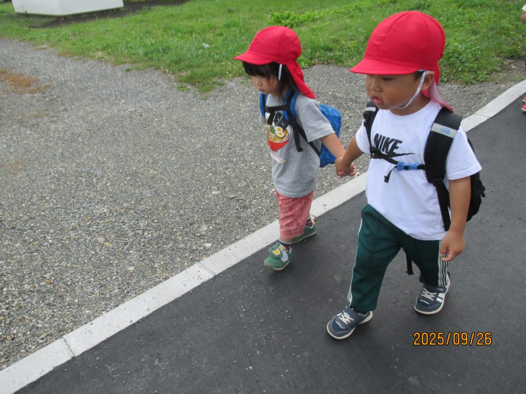 あさがお組やたんぽぽ組のお兄さんお姉さん達に歩き方を教わっていた子ども達。