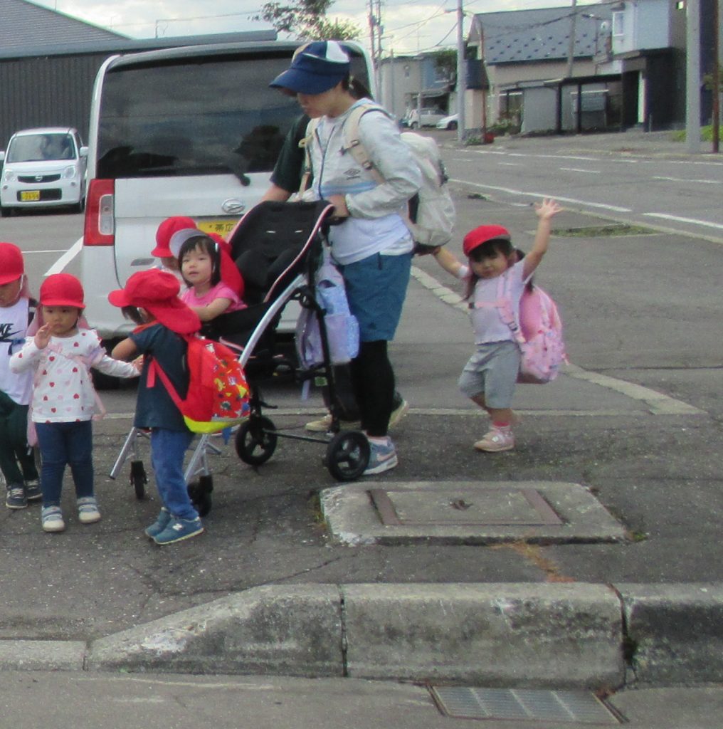 道路を渡る時もキョロキョロと車を確認。手を挙げて渡っていましたよ。