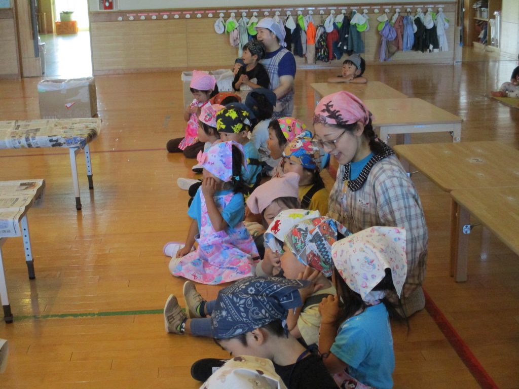 みんなで集まって、カレー作りの工程を確認したり、カレーライスの歌をうたい気合いをいれたりしました。