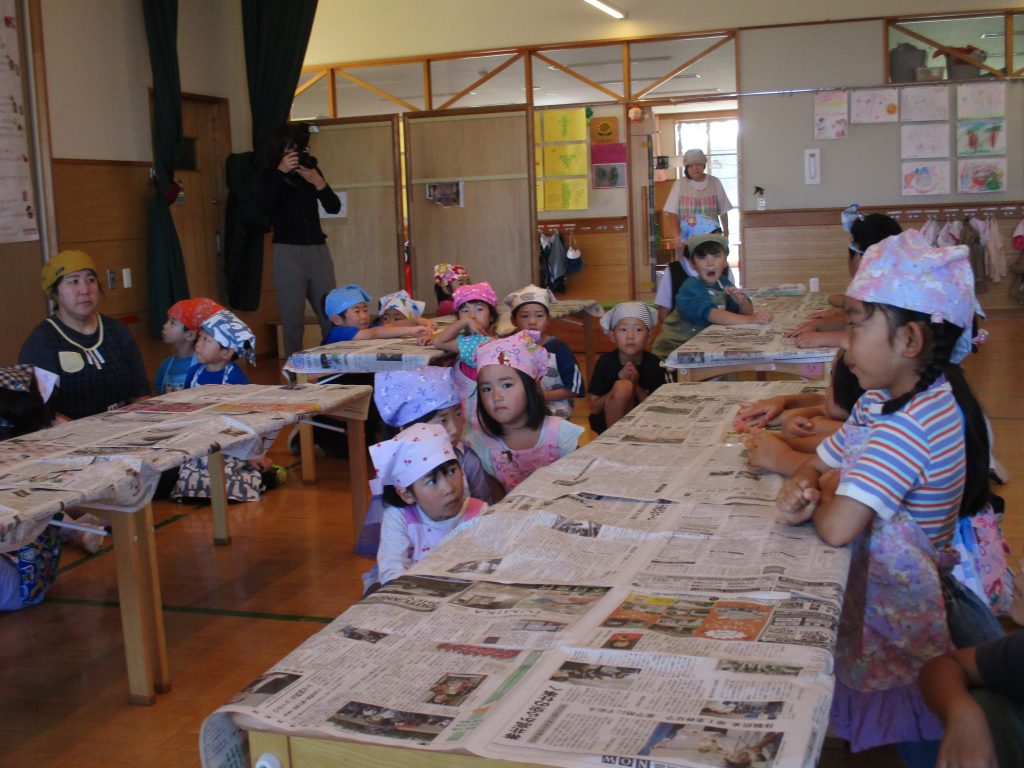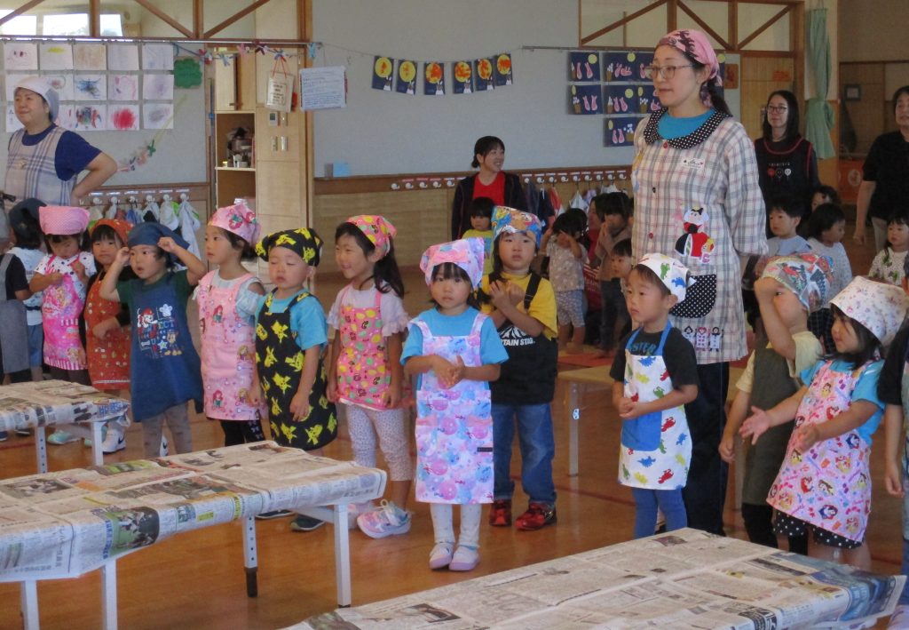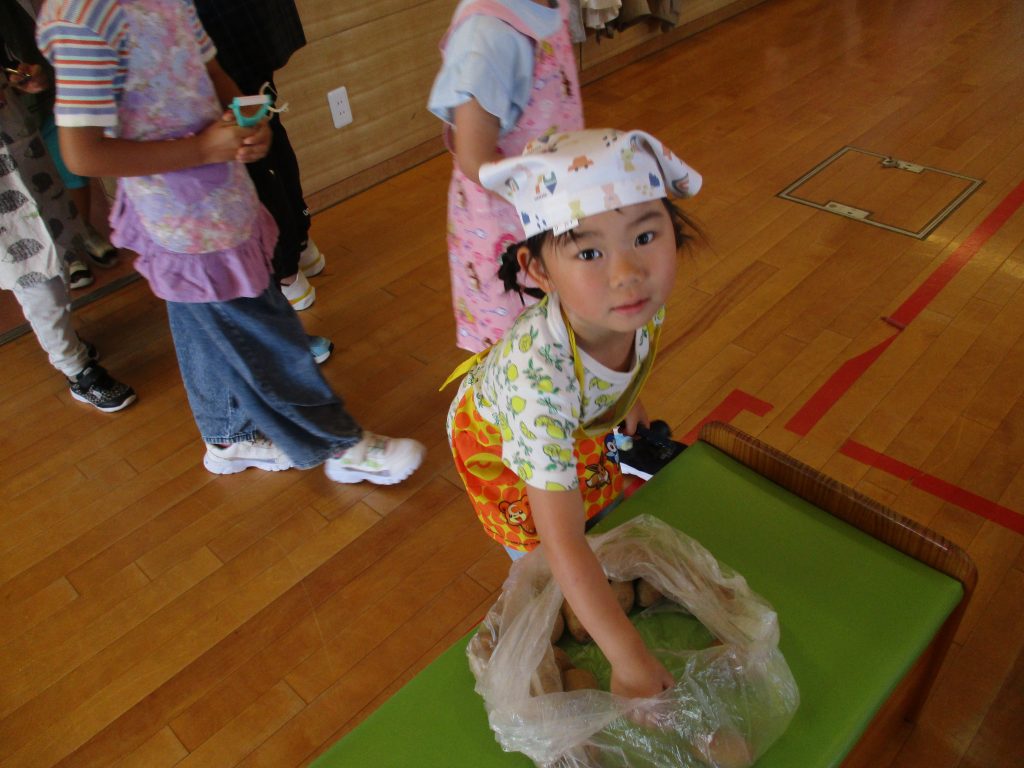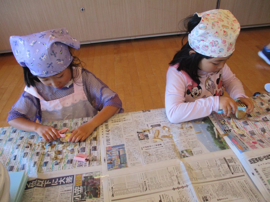 ひまわり組は、ピーラーでじゃがいもの皮をむき、包丁で切りました。