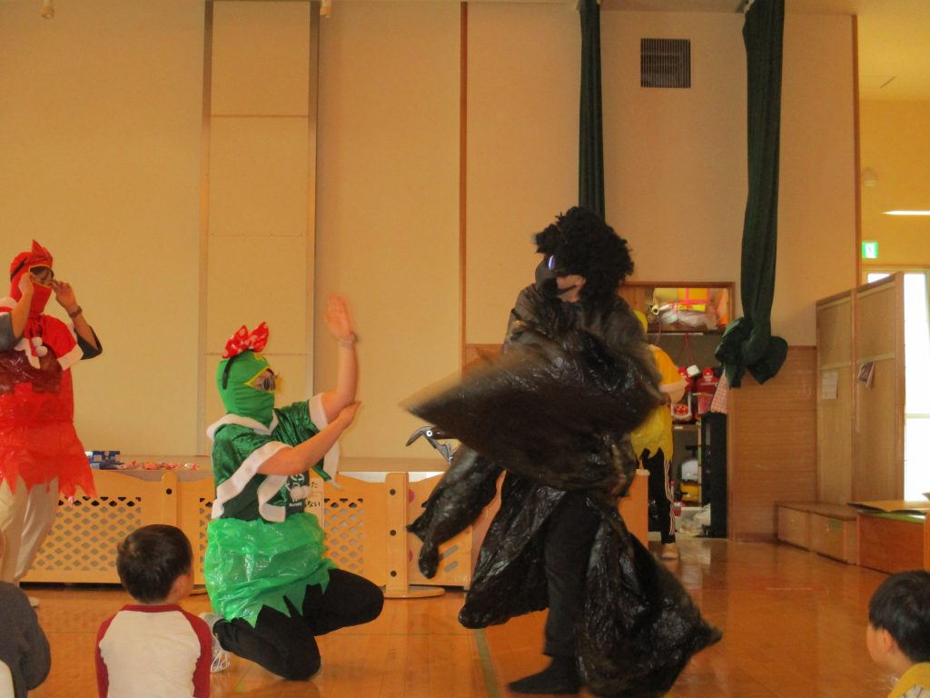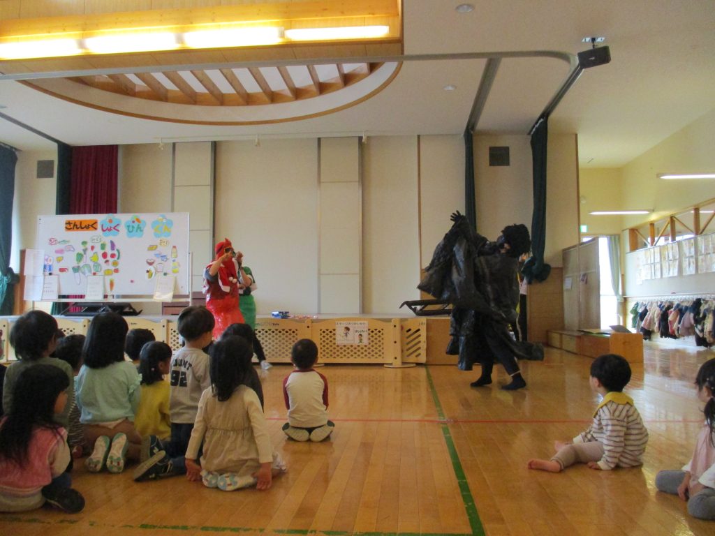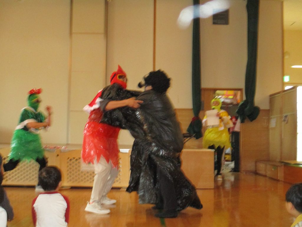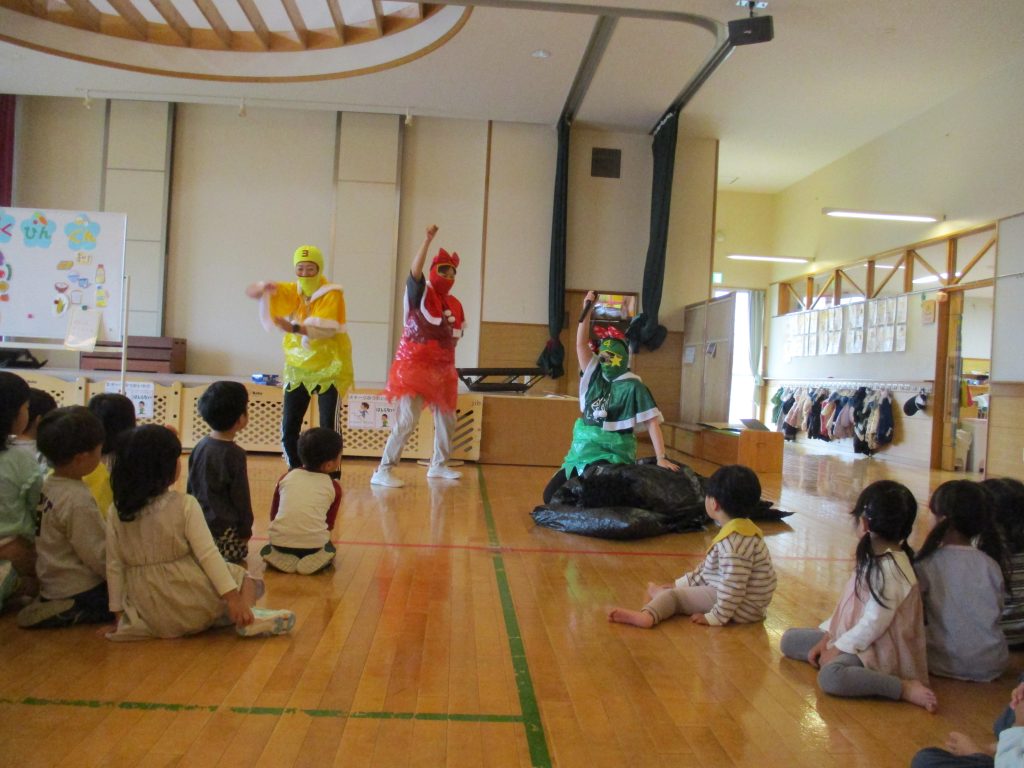 「お肉、お魚、ご飯、パン、野菜もしっかり食べて元気な強い体になろうね!」