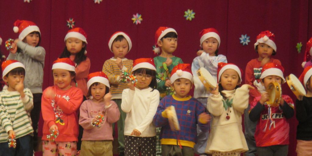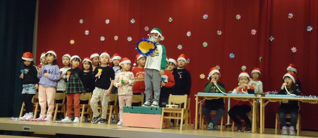 あさがお組のみんなも楽器を持ち、「おめでとうクリスマス」を演奏してくれました。