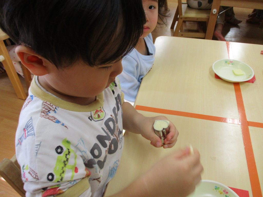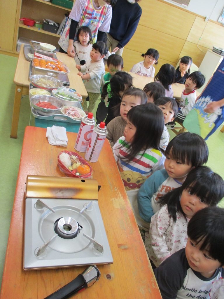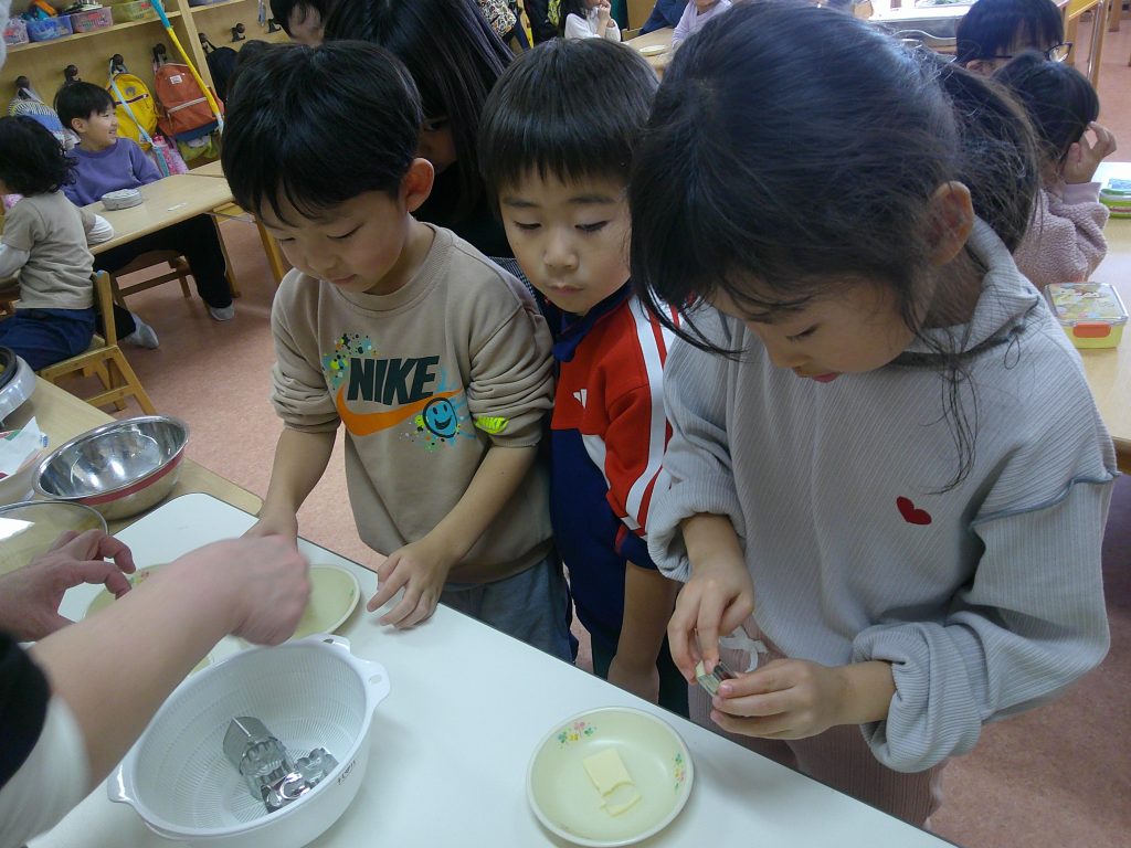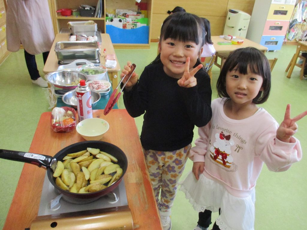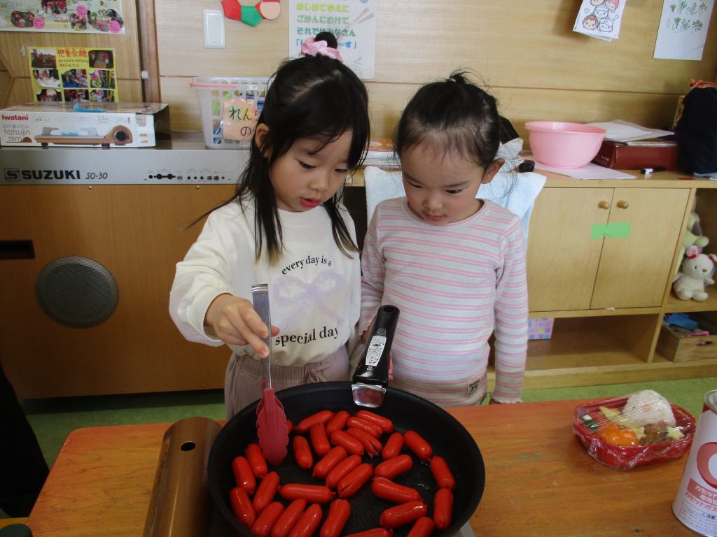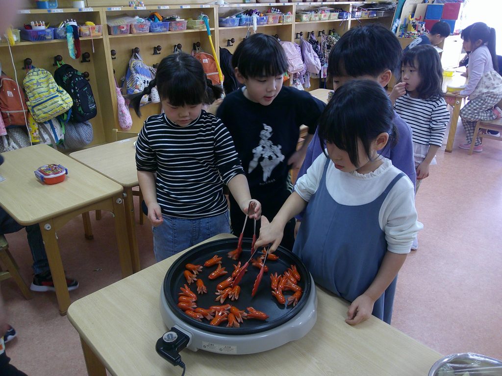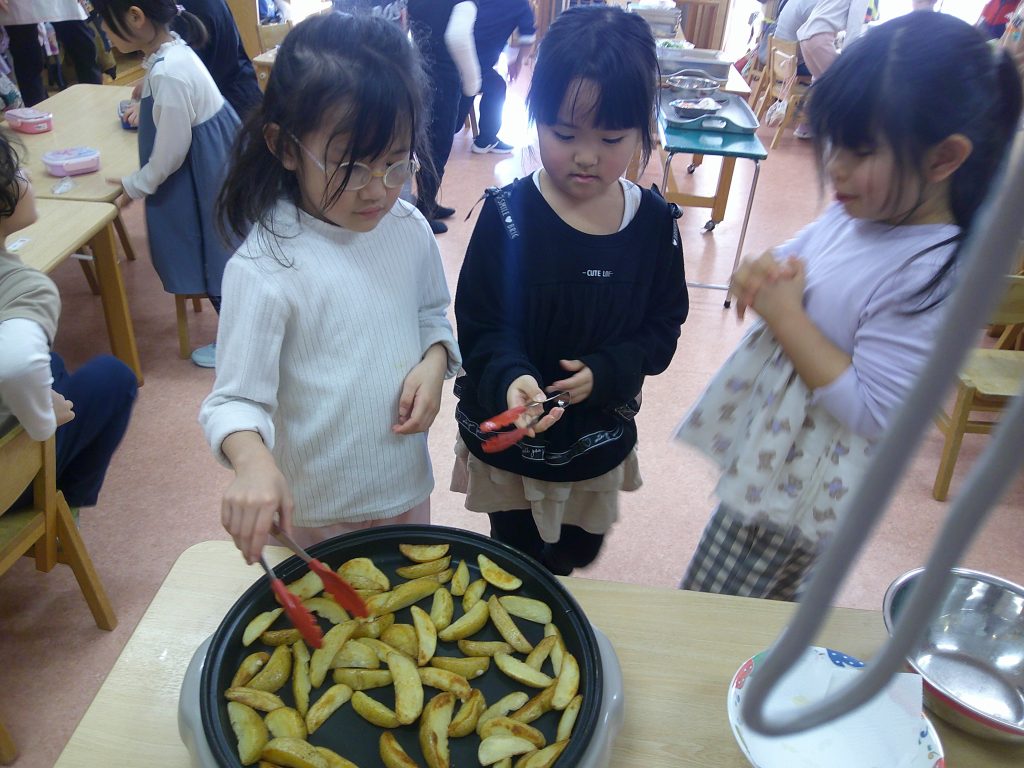 4,5歳児あさがお組ひまわり組は型抜きチーズの他にたこさんウインナーを焼いたり、ポテトを焼いたりしました。